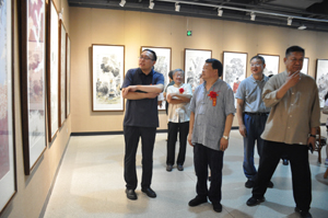 开幕式后,出席活动领导和嘉宾共同观看了展览,东营、泰安两地的艺术家们参加了在新泰文化城举办的两地艺术交流座谈会,相互交流绘画技艺,共同探讨笔墨传承。